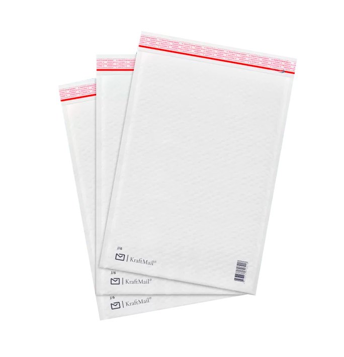 - Крафт-пакеты с воздушной подушкой J/6 белого цвета - это упаковочная продукция, которая состоит из двух материалов: снаружи слой плотной крафт-бумаги 95 г/м2, а внутри - трехслойная воздушно-пузырьковая пленка 90 г/м2.