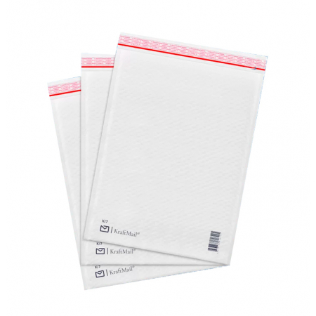 - Крафт-пакеты с воздушной подушкой К/7 белого цвета - это упаковочная продукция, которая состоит из двух материалов: снаружи слой плотной крафт-бумаги 95 г/м2, а внутри - трехслойная воздушно-пузырьковая пленка 90 г/м2.
