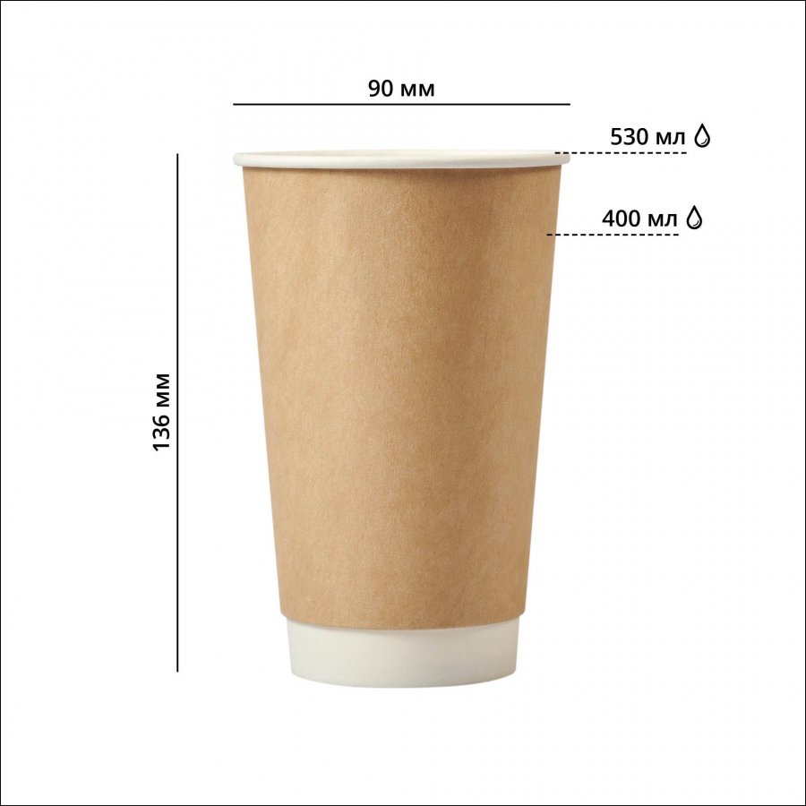 Бумажный стакан двухслойный 400 мл (макс 530 мл) диаметр 90 мм крафт