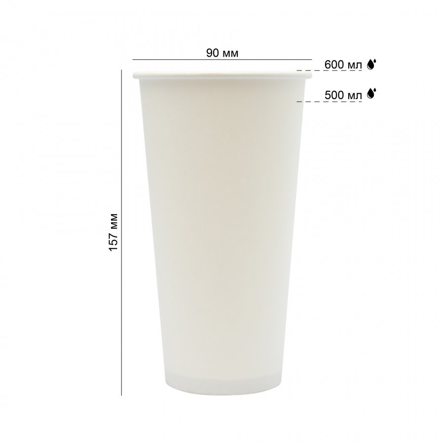 Бумажный стакан белый 500мл, диаметр 90мм (однослойный)
