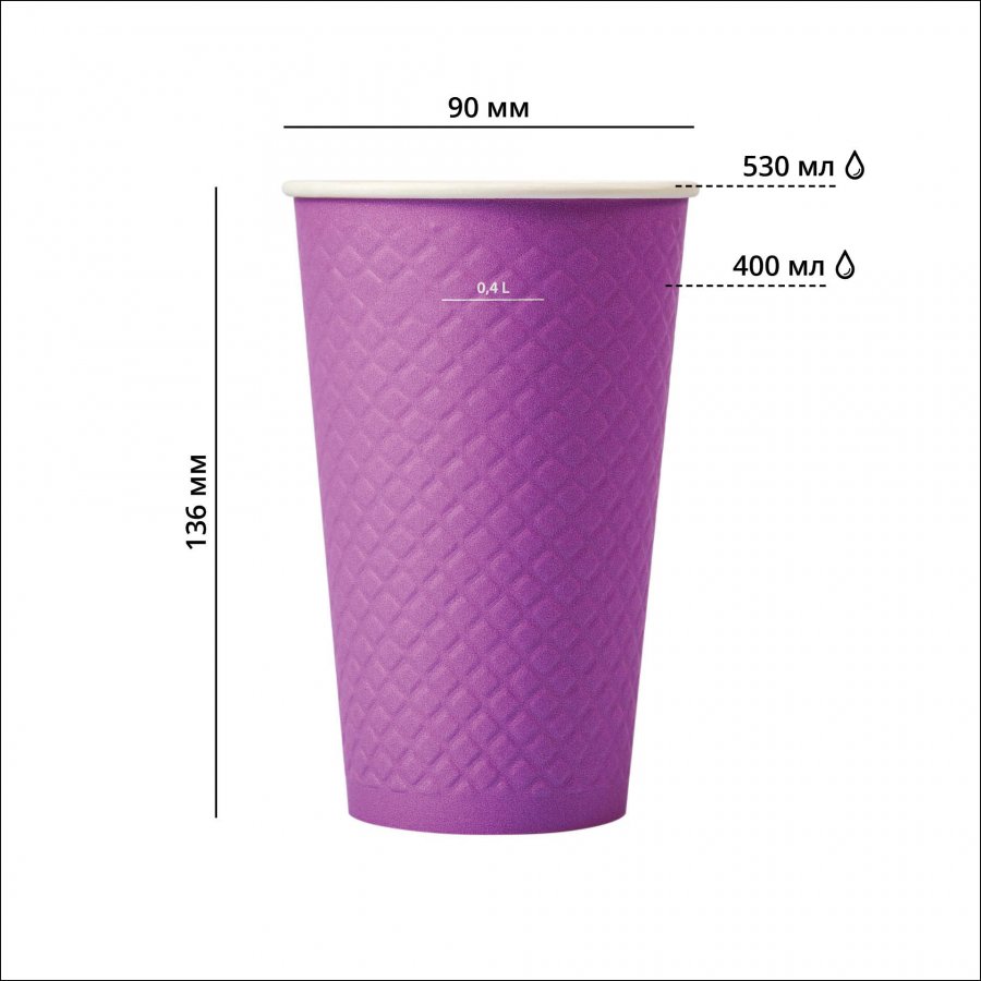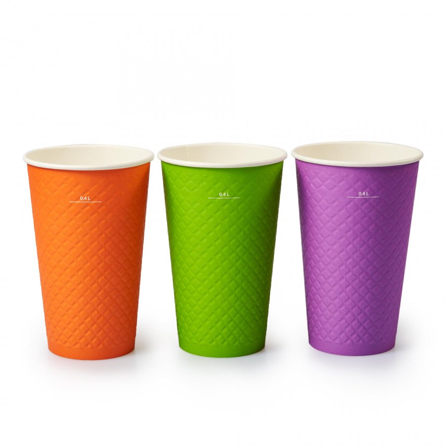 Бумажный стакан двухслойный с конгревом 400 мл (макс 530 мл) диаметр 90 мм разноцветный