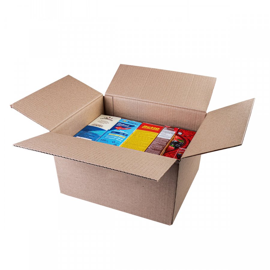 - Подходит как для упаковки бытовой химии, так и пищевых продуктов. В пустом виде картонный гофрокороб легко и удобно складывается. Выполнен из трехслойного гофрокартона марки Т-23 бурого цвета.