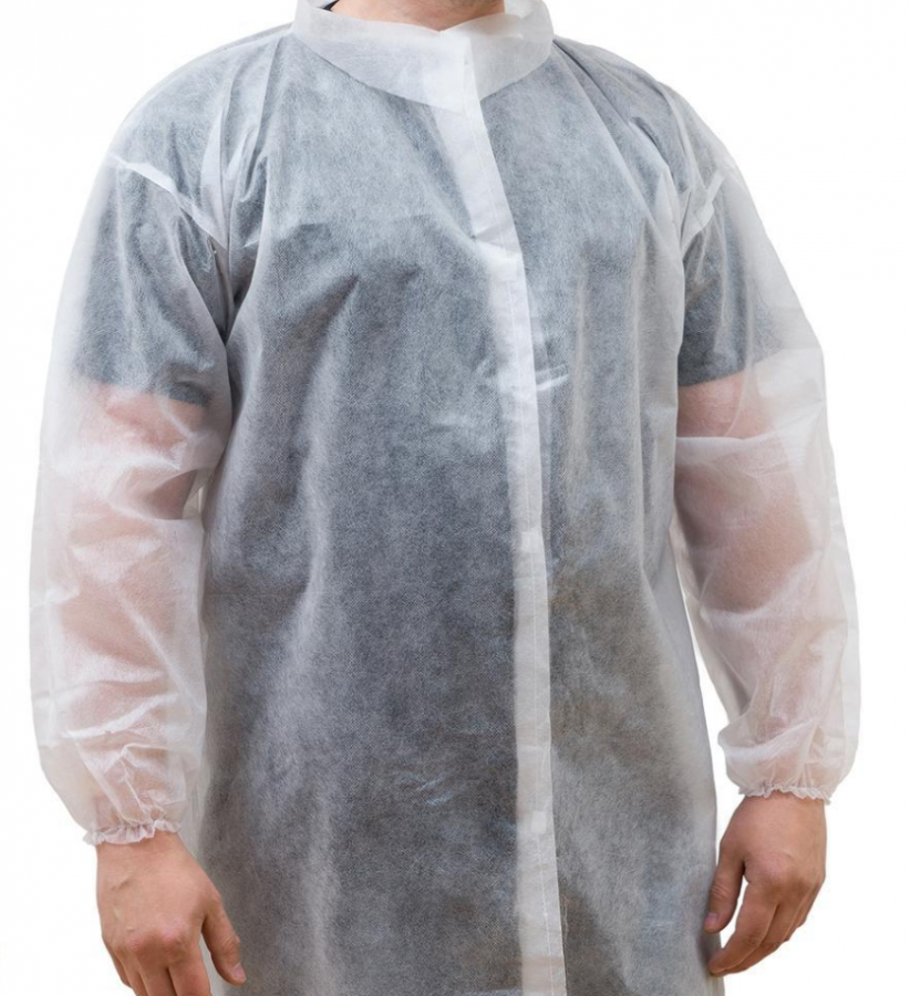 Халаты для посетителей изготовлены из спанбонда. Одноразовые средства защиты позволяют снизить риск заболевания медперсонала и пациентов, а также уменьшают загрязнение пищевых продуктов на производстве.