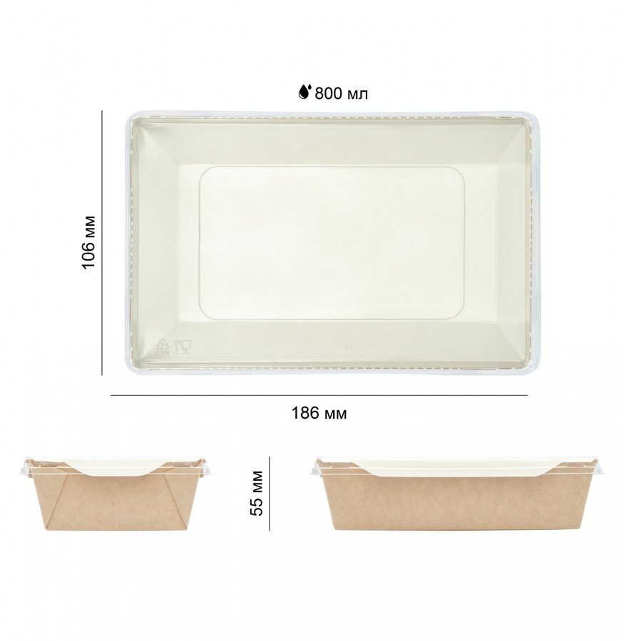 Контейнер бумажный с крышкой 800 мл. 186*106*55мм (белый)