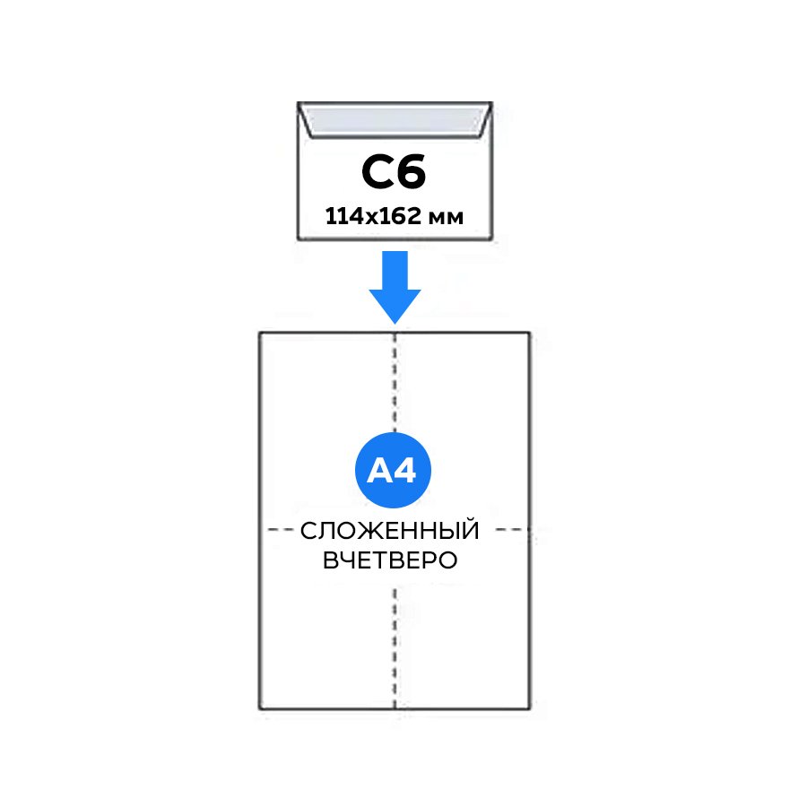 В конверт C6 входит лист формата А4 сложенный вчетверо.
