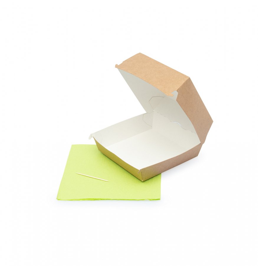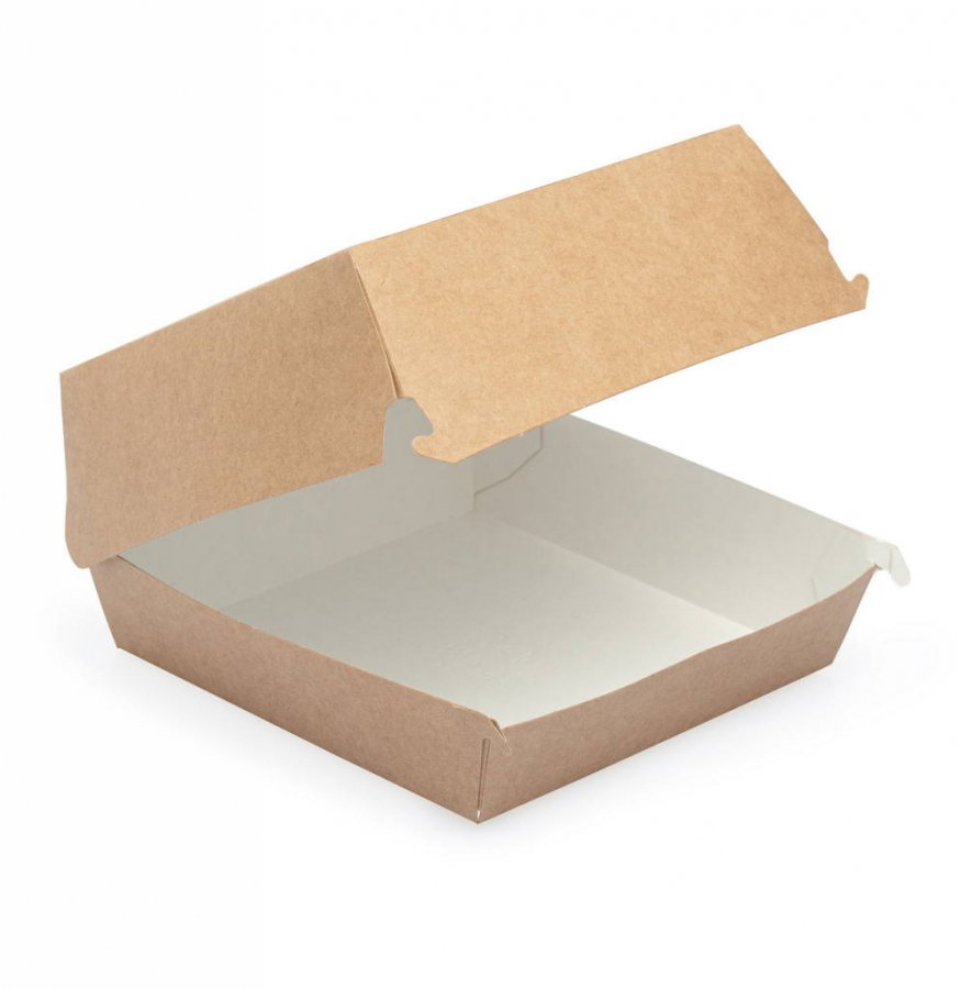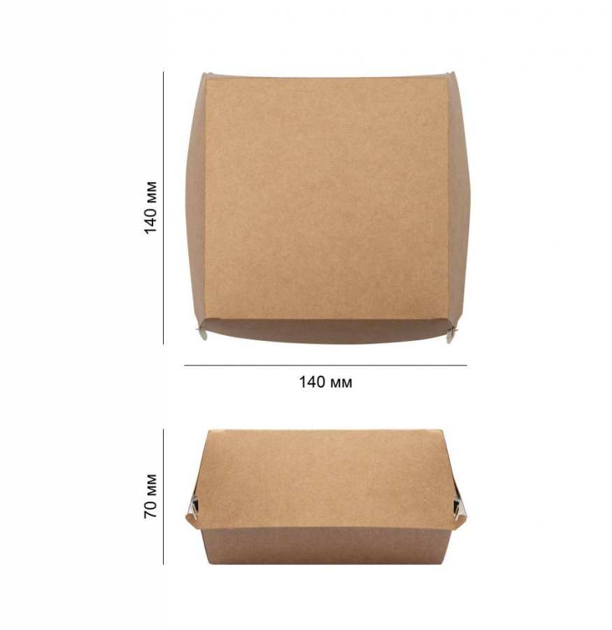 Коробки 140x140x70 мм (размер L) применяются для упаковки и доставки бургеров, сэндвичей, чизбургеров и др.