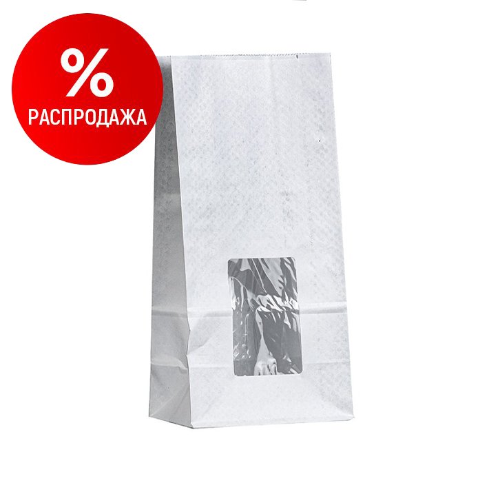 Крафт пакет с прямоугольным окном 120*80*250 мм (2 слоя), белый