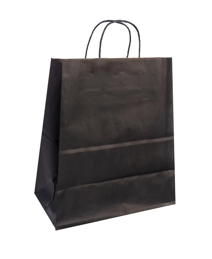 - Бумажные крафт пакеты черного цвета с кручеными ручками, размер 22x12x25 см.