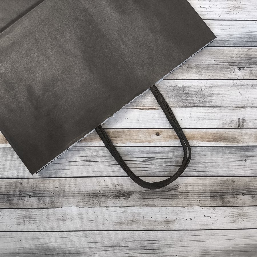 - Бумажные крафт пакеты черного цвета (внутри белые) с кручеными ручками, размер 24x14x28см.