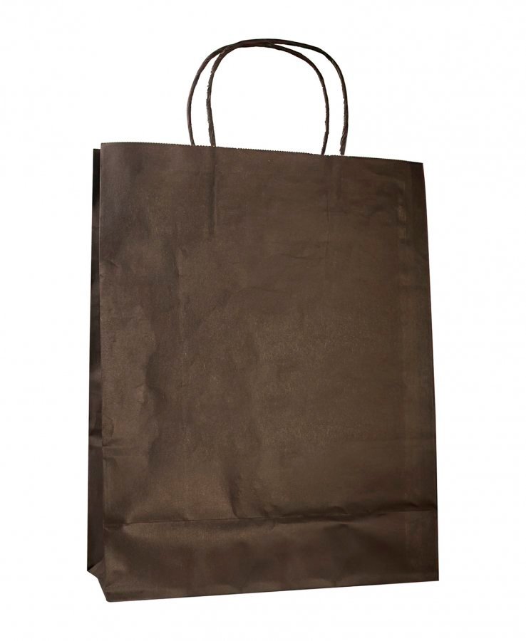• Бумажные крафт пакеты черного цвета с кручеными ручками, размер 24x11x32 см.