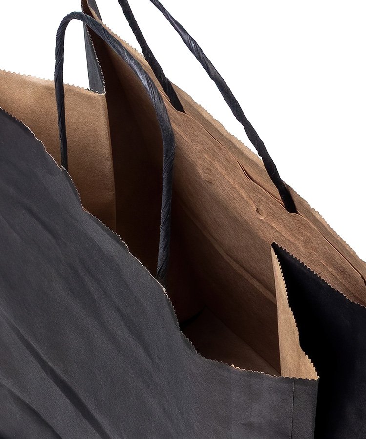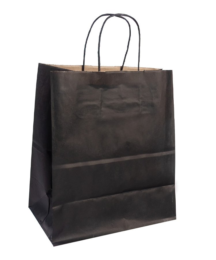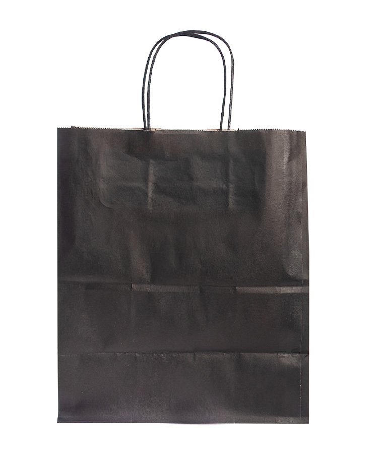 - Черные бумажные крафт пакеты с кручеными ручками, размер 24x14x28 см.