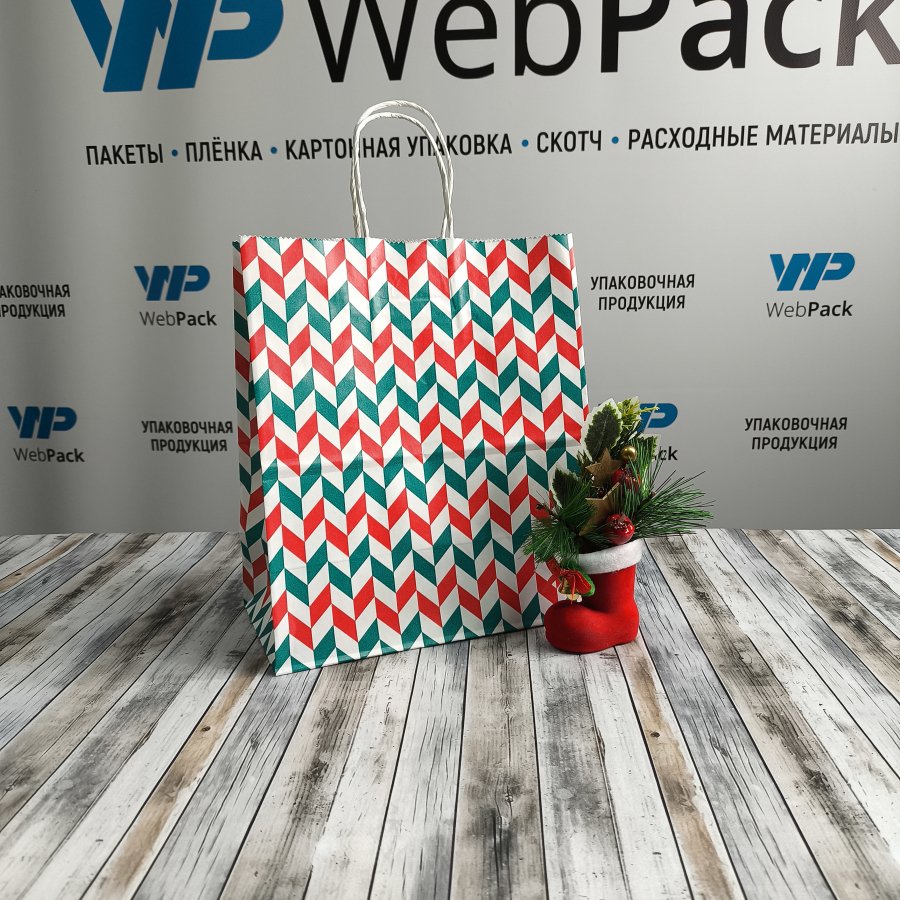 Крафт-пакеты с геометрическим рисунком "Зигзаг" 25x22x12 см отлично подходят для упаковки подарков и сувениров.