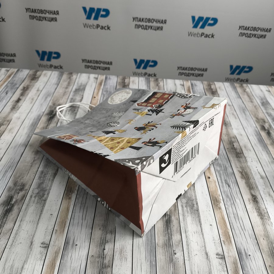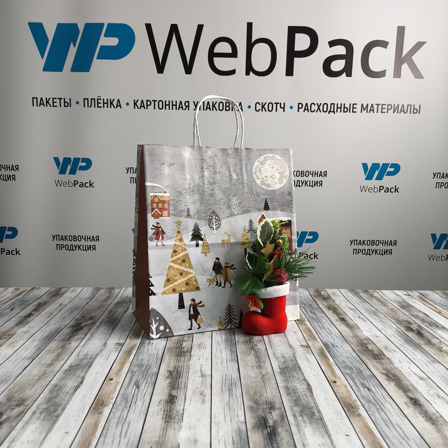 Крафт-пакеты с рисунком "Зимушка" 25x22x12 см отлично подходят для упаковки подарков, сувениров и других различных товаров.