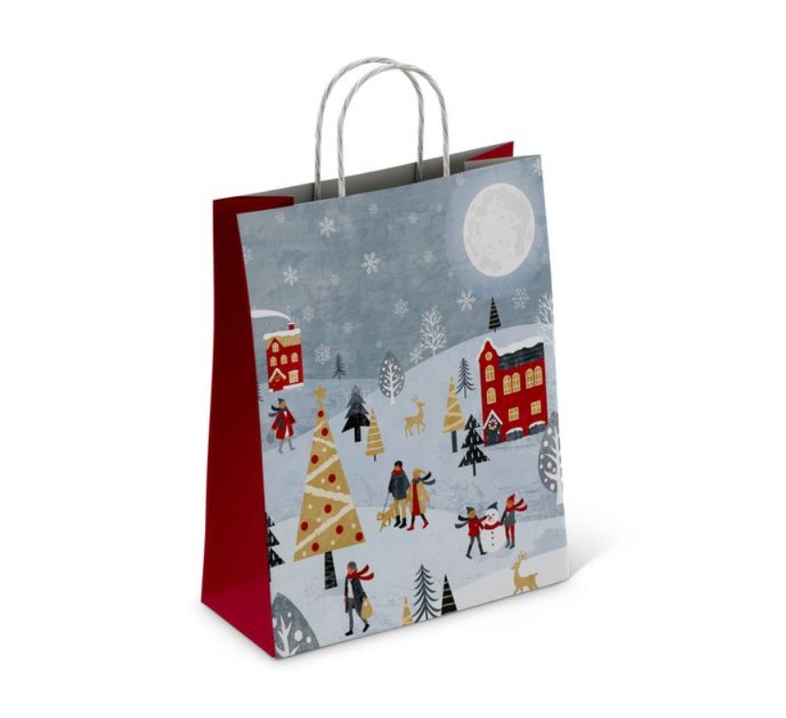 Крафт пакет с кручеными ручками, 25*22*12 (В*Ш*Г) см, "Зимушка" К0000033839