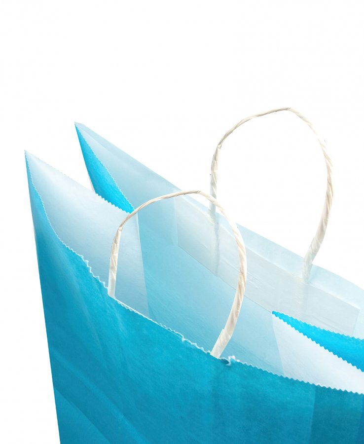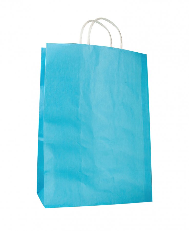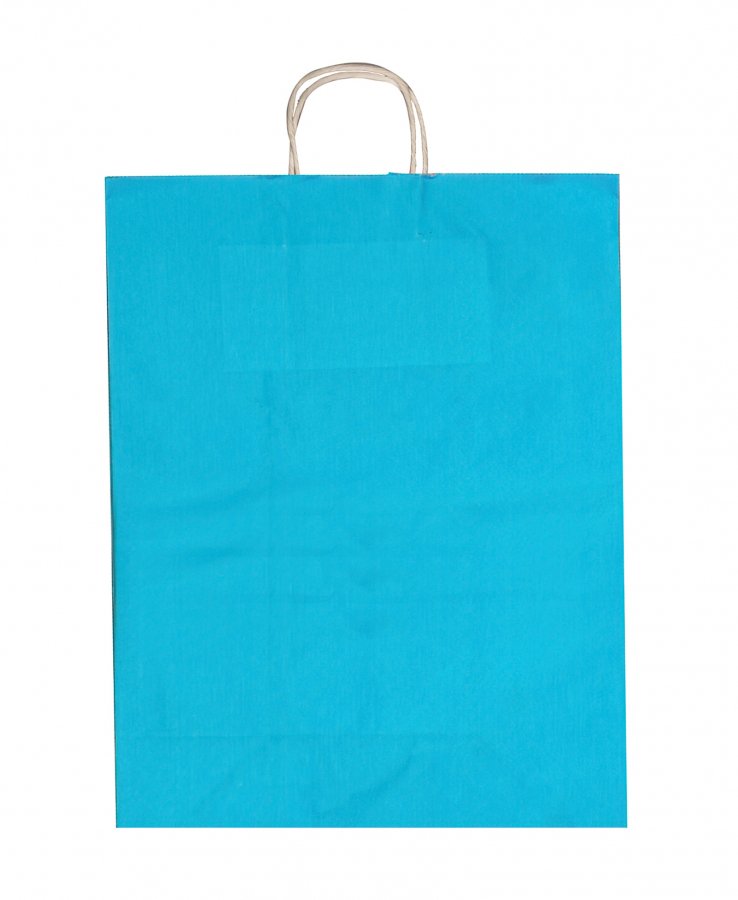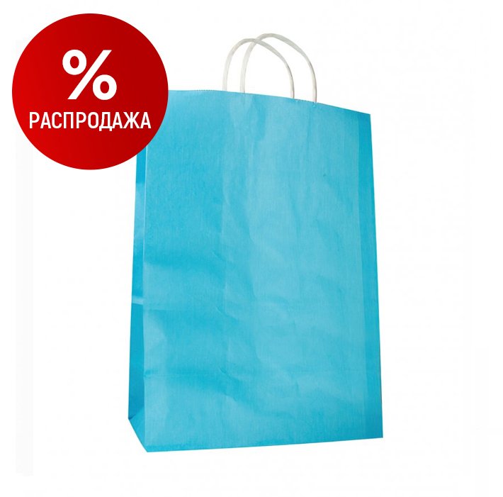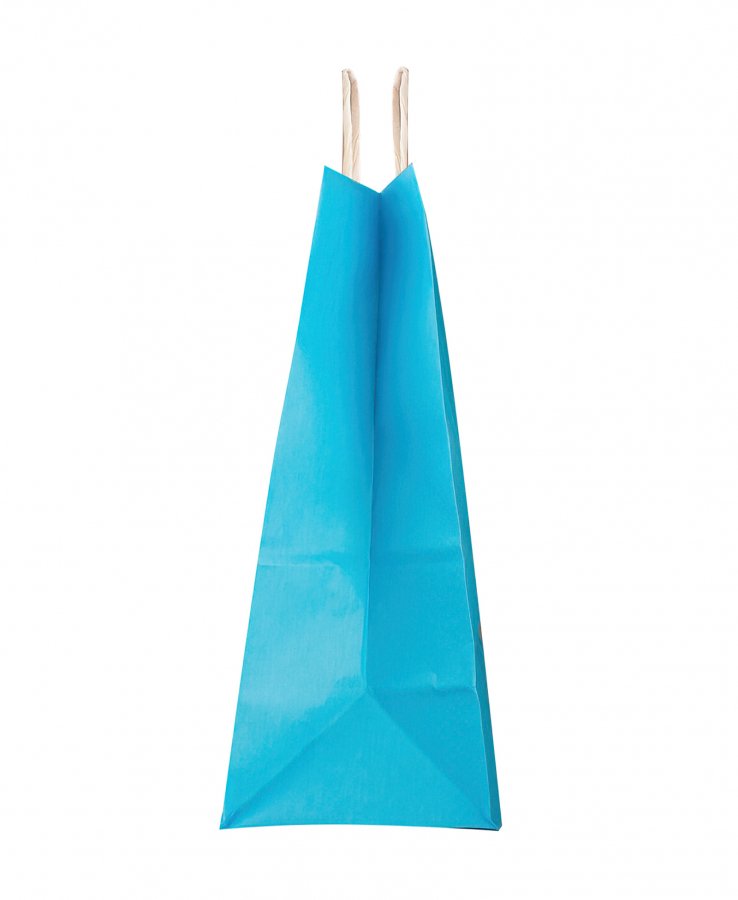 - Голубые бумажные крафт пакеты с кручеными ручками, размер 22x13x32 см.