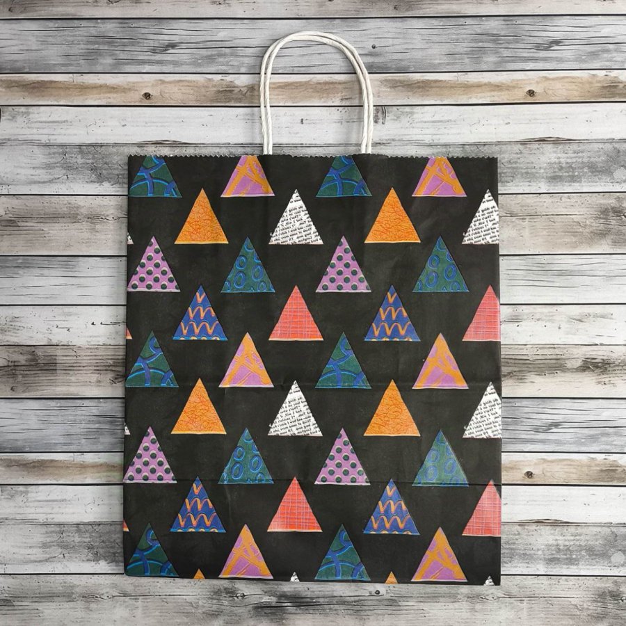 - Подарочные крафт-пакеты 25x22x12 см с рисунком "Геометрия" отлично подходят для подарков, аксессуаров, книг, сувениров и других различных товаров.