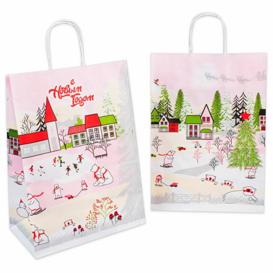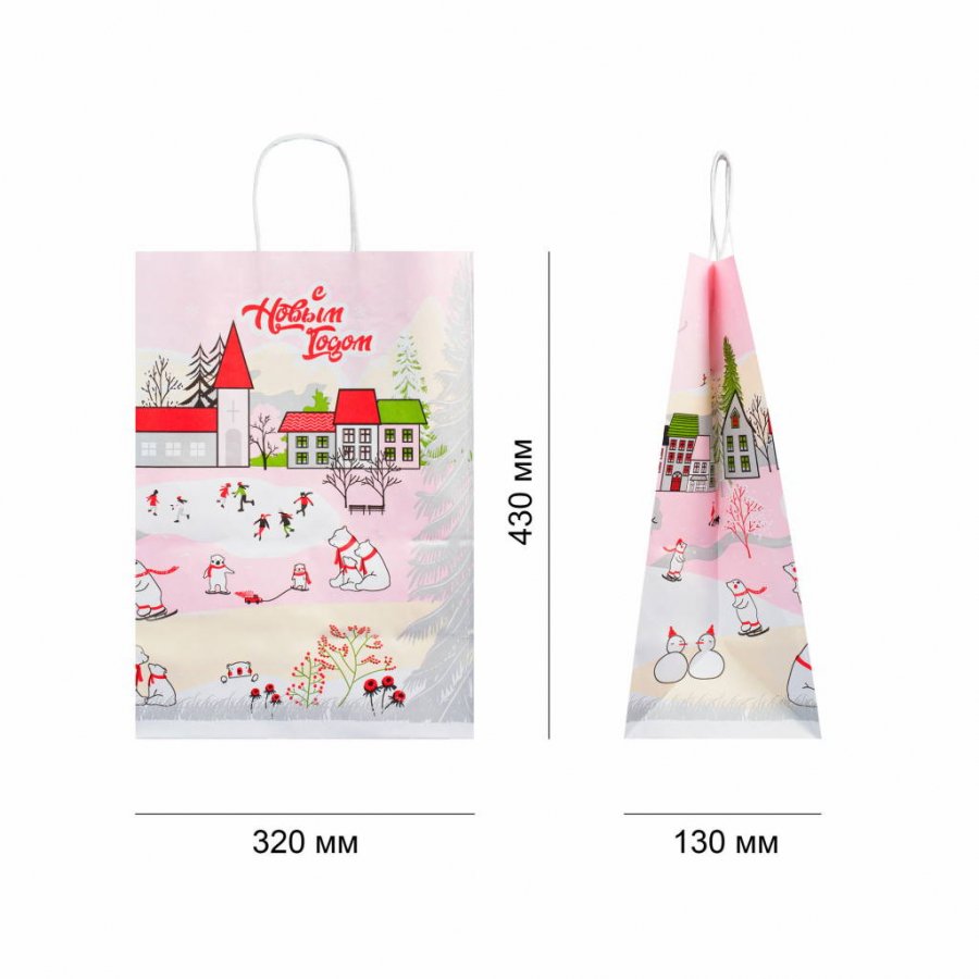 - Крафт-пакеты с рисунком "Новогодние мишки" 32x13x43 см - это стильная и удобная упаковка для подарков.