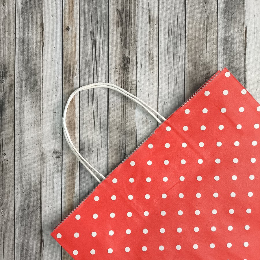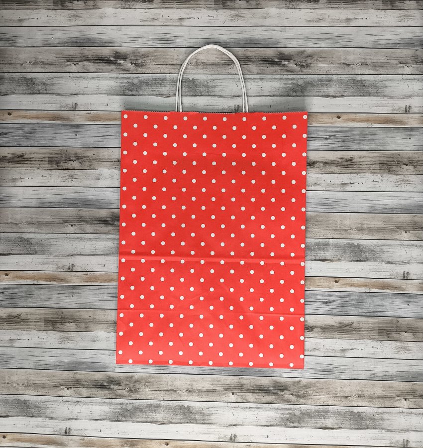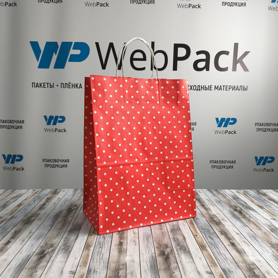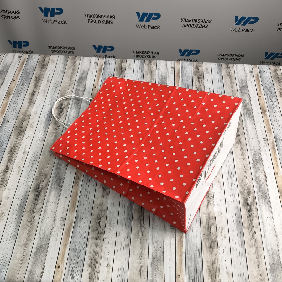 - Крафт-пакеты красного цвета с рисунком "Горох" 35x26x15 см отлично подходят для упаковки подарков, сувениров и других различных товаров.