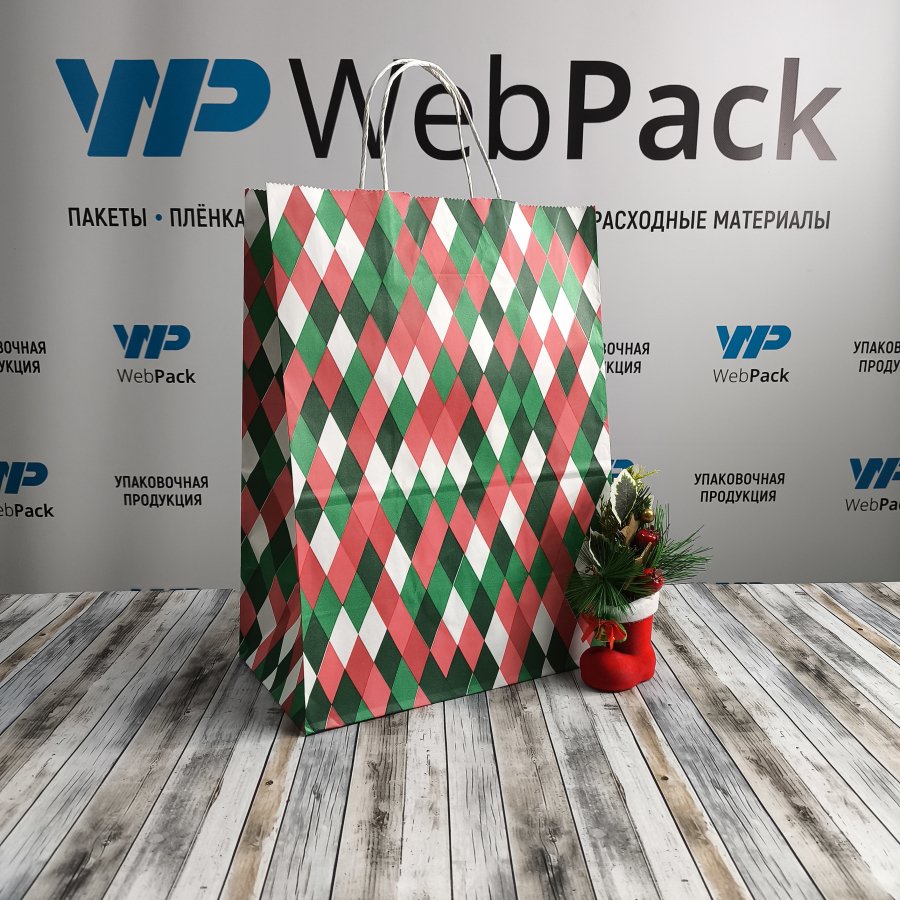 - Крафт пакет с кручеными ручками, 35*26*15 (В*Ш*Г) см, "Ромб"