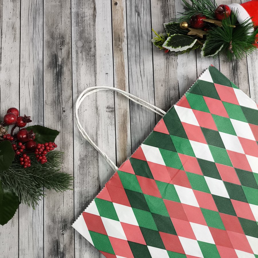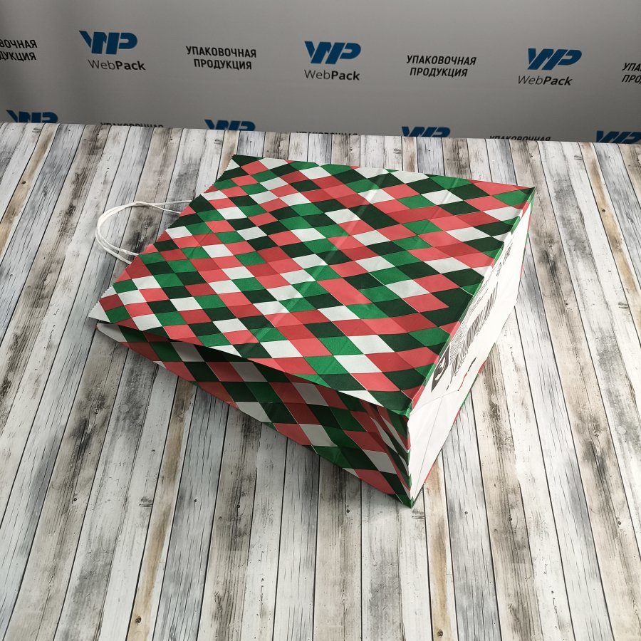 - Кручёные ручки обеспечивают удобство переноски. Прямоугольное дно позволяет ставить пакет на ровную поверхность.