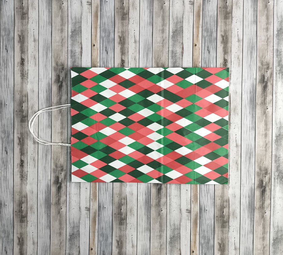 - Крафт-пакеты с рисунком "Ромб" 35x26x15 см отлично подходят для упаковки подарков, сувениров и других различных товаров.