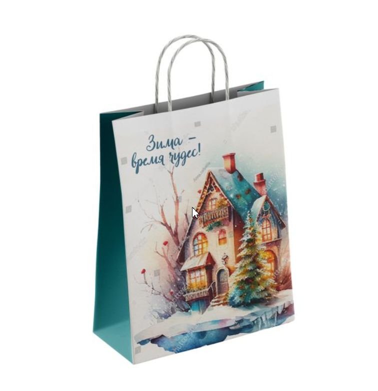 - Крафт-пакеты "Время чудес" с новогодним рисунком 35x26x15 см отлично подходят для упаковки подарков, сувениров и других различных товаров.