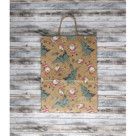 Крафт-пакеты с новогодним рисунком "Ёлкопад" 35x26x15 см отлично подходят для упаковки подарков и сувениров.