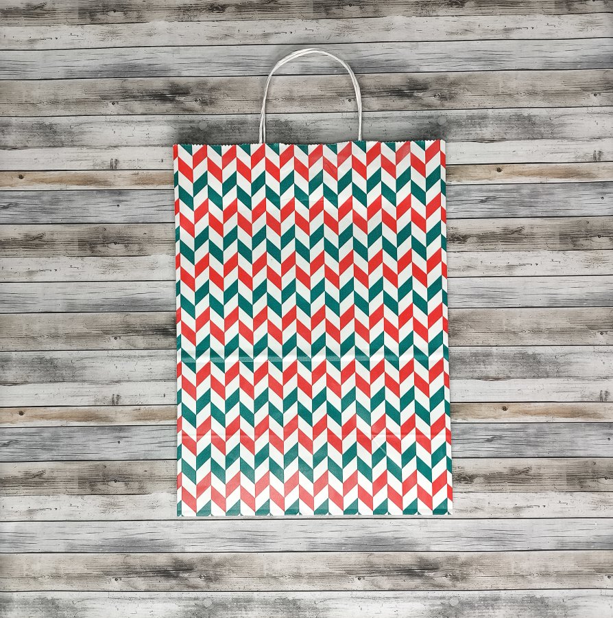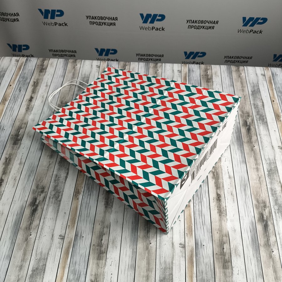 Крафт-пакеты с геометрическим рисунком "Зигзаг" 35x26x15 см отлично подходят для упаковки подарков и сувениров.