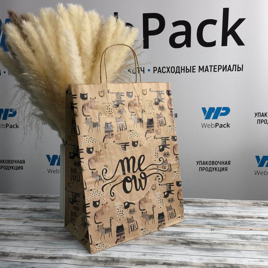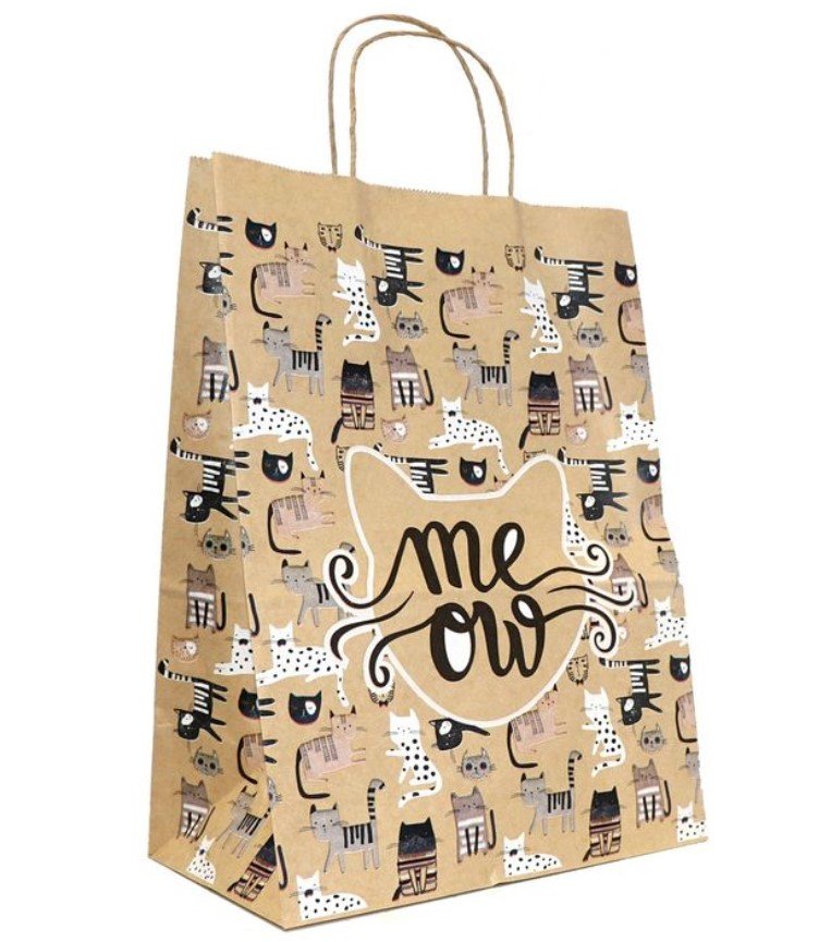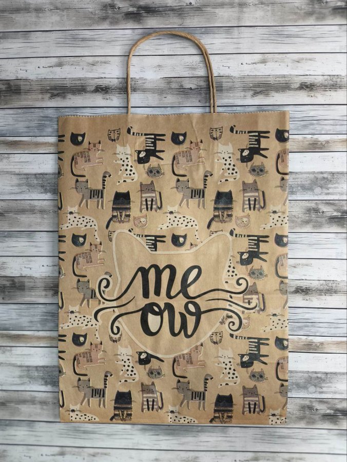 Крафт пакет с кручеными ручками, 35*26*15 (В*Ш*Г) см, "Мяу" К0000020292