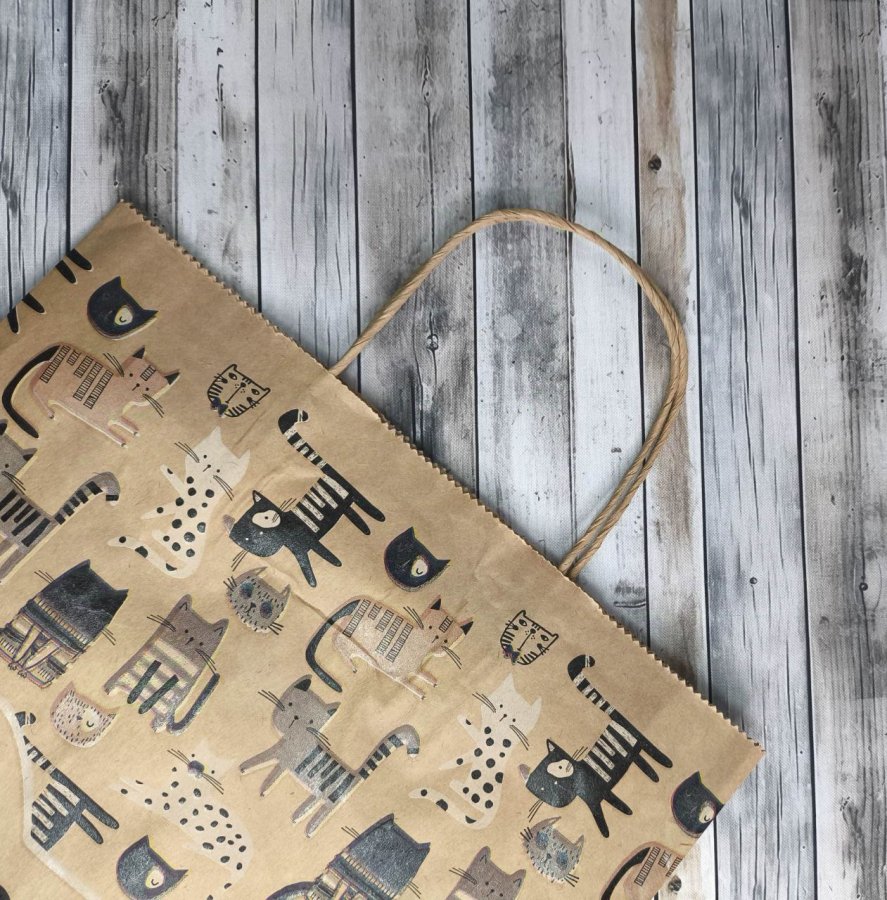 - Подарочные крафт-пакеты 35x26x15 см с рисунком "Мяу" отлично подходят для подарков, аксессуаров, книг, сувениров и других различных товаров.