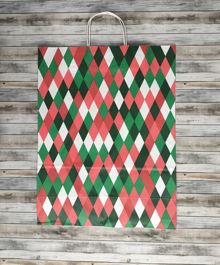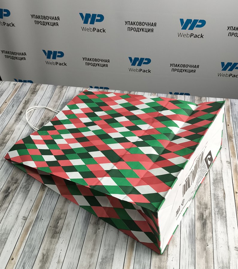 - Крафт-пакеты с рисунком "Ромб" 45x35x15 см отлично подходят для упаковки подарков, сувениров и других различных товаров.
