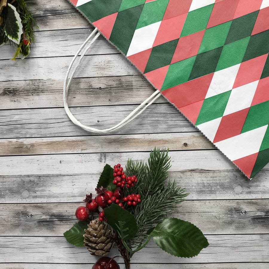 - Кручёные ручки обеспечивают удобство переноски. Прямоугольное дно позволяет ставить пакет на ровную поверхность.