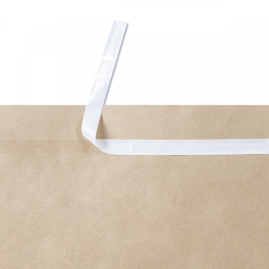 - Данные пакеты, в отличие от обычных бумажных вариантов без ручек, можно запечатывать. На клапане расположена полоса с клеевым слоем. Достаточно оторвать полоску, заклеить свободный край и герметичная упаковка готова к продаже!