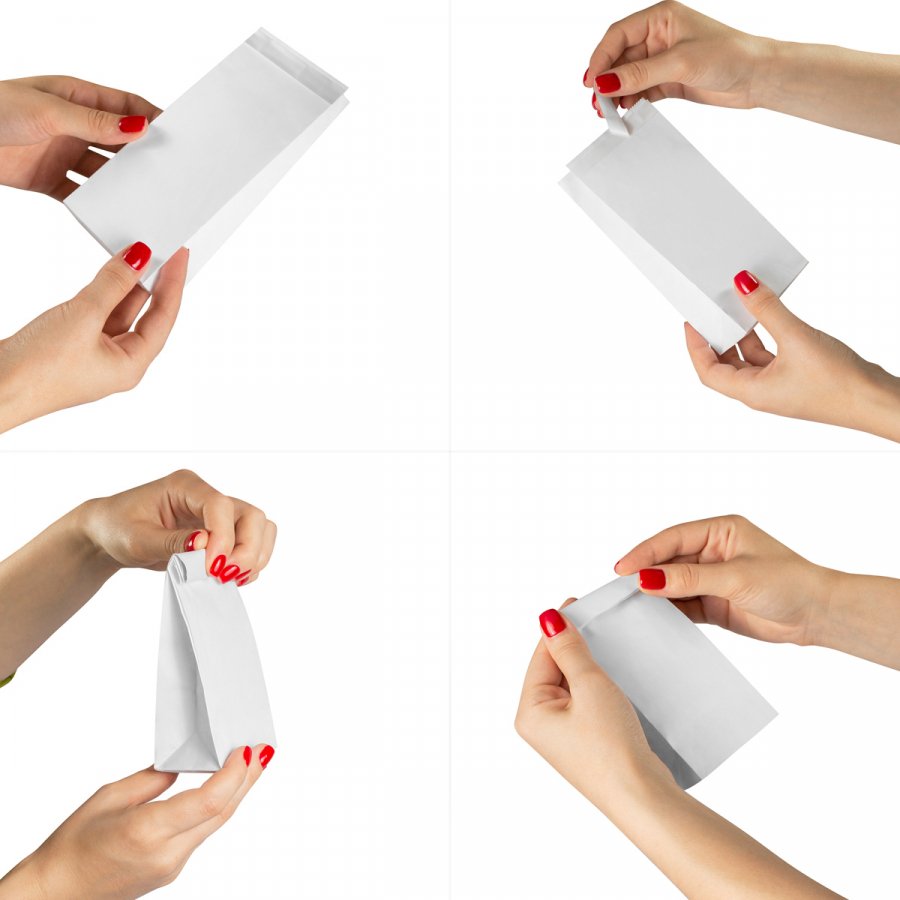 - Благодаря прямоугольному дну, крафт-пакеты можно ставить вертикально (например, на полку в супермаркете или в шкафу).
