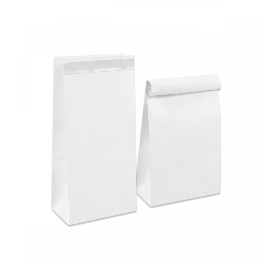 - Крафт-пакеты 80x50x170 мм с прямоугольным дном и клеевым клапаном. Изготовлены из бумаги белого цвета плотностью 70 г/м2. Материал экологичный, биоразлагаемый.