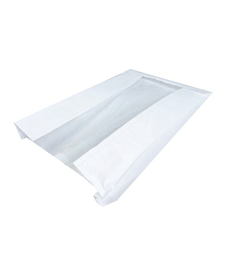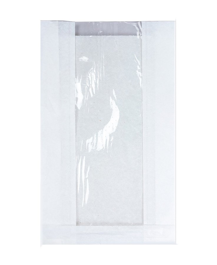 - Крафтовые пакеты белого цвета, размер 200(100)*60*340 мм, с V-образным дном и прямоугольным окошком с микроперфорацией. Через прозрачное окно покупателю видно содержимое.