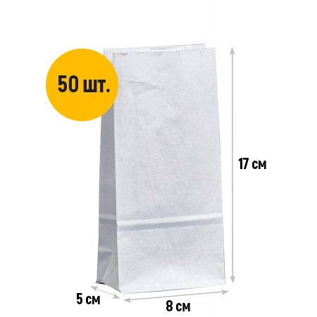Крафт пакет с прямоугольным дном 80*50*170мм, 65 г/м2 (белый)