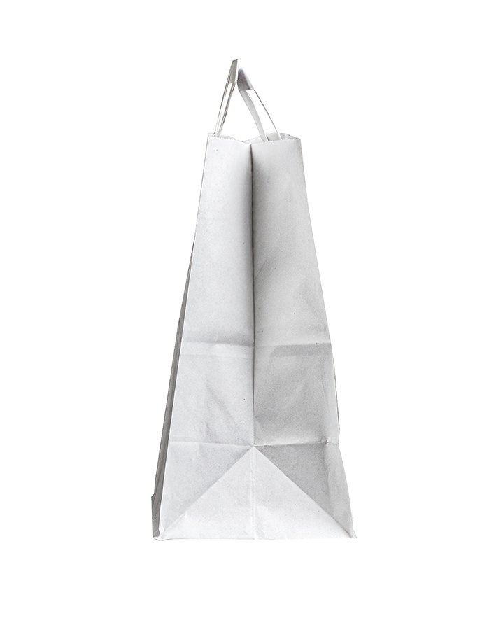 • Крафт пакеты белого цвета с плоскими ручками 280x150x320 мм - универсальные в применении, подходят для упаковки одежды, обуви, аксессуаров, подарков, продуктов и др.