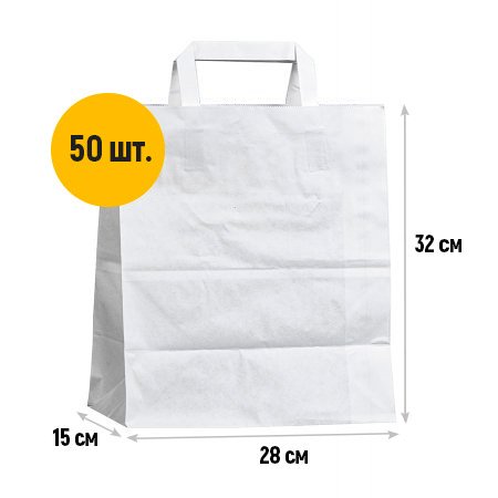 Крафт пакет с плоскими ручками, 280*150*320 бел