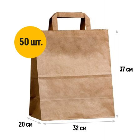 - Крафт пакеты бурого цвета с плоскими ручками 320x200x370 мм - универсальные в применении, подходят для упаковки одежды, обуви, аксессуаров, подарков, продуктов и др.