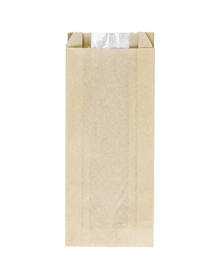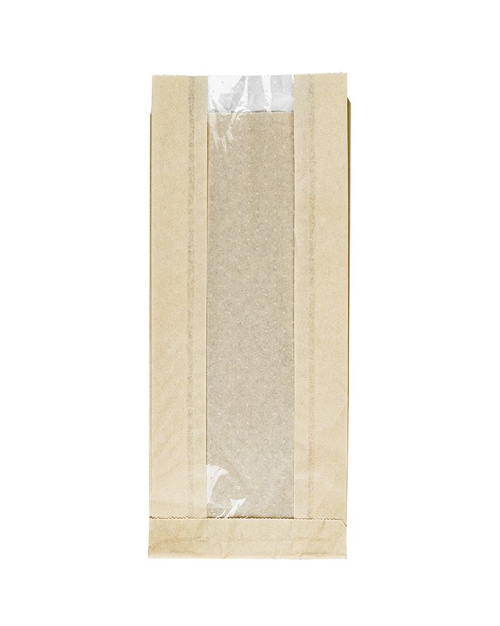 Крафт пакет с V-образным дном с окном 110(50)*40*260мм, 40 г/м2 (бежевый)