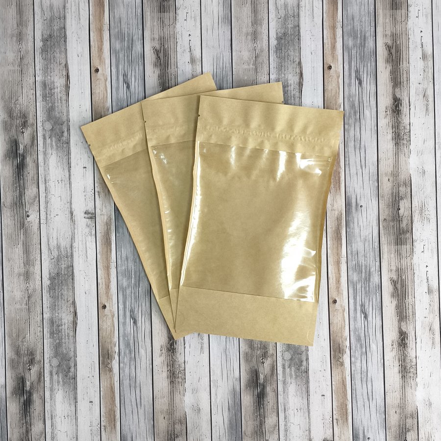 • Крафт пакеты дой-пак бурого цвета с окном, размер 135x225 мм, применяются для упаковки и хранения сыпучей продукции (кофе, чай, крупы, специи, орехи, сухофрукты, сладости, снэки и др.).
