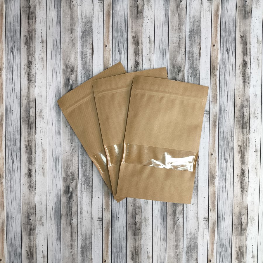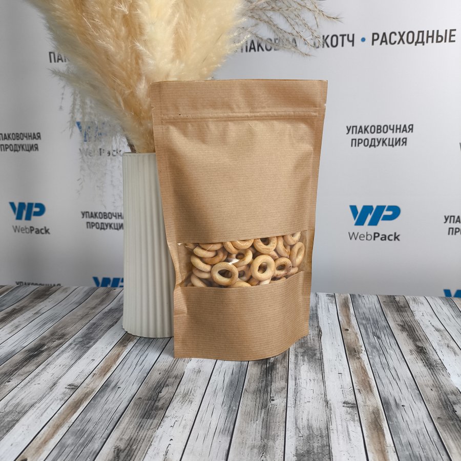 • Крафт пакеты дой-пак бурого цвета с окном, размер 160x250 мм, применяются для упаковки и хранения сыпучей продукции (кофе, чай, крупы, специи, орехи, сухофрукты, сладости, снэки и др.).