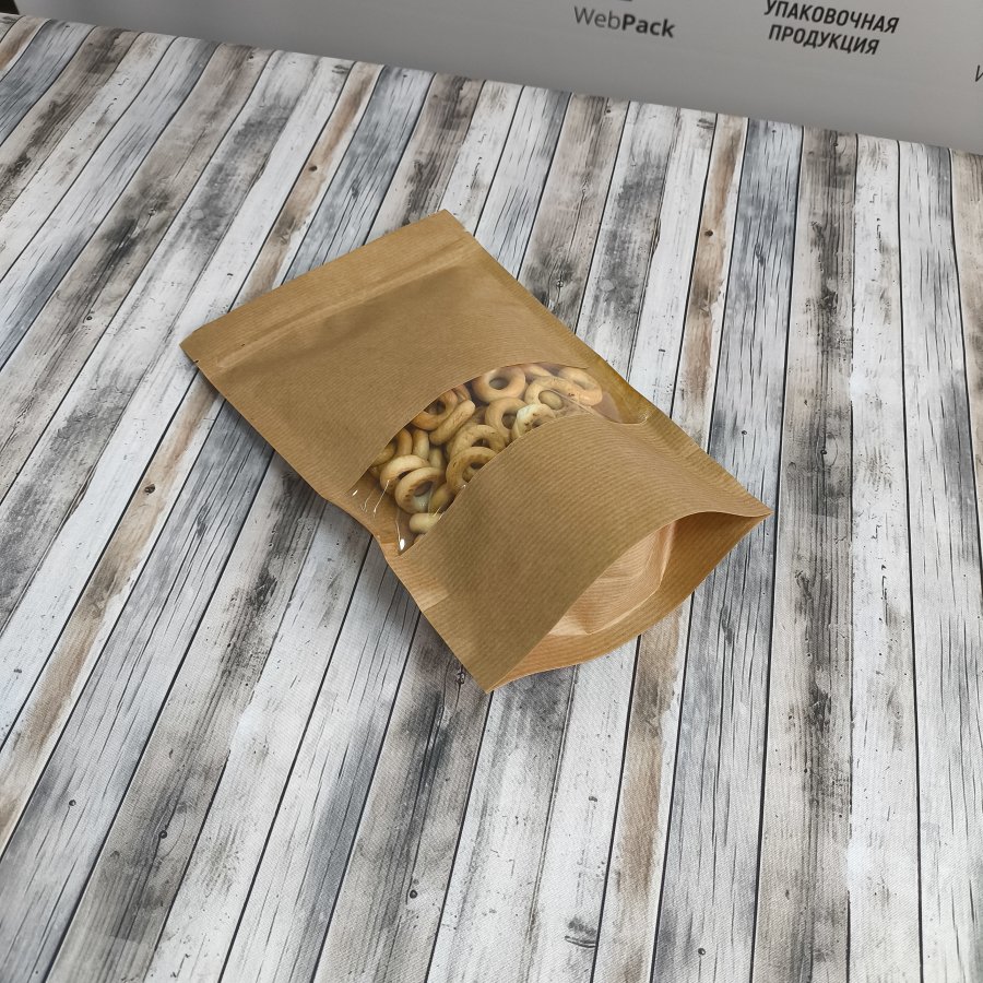 Пакет Дой-Пак 16*25(+4,5)см, Крафт (бурый), с окном 4см, 50 шт.