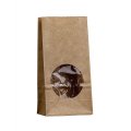- Двухслойные крафт пакеты 100x60x200 мм с окном используются для упаковки чая, кофе, какао, сладостей, орехов и других сыпучих продуктов.