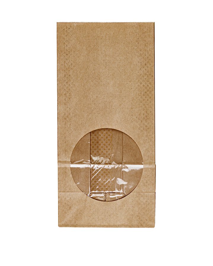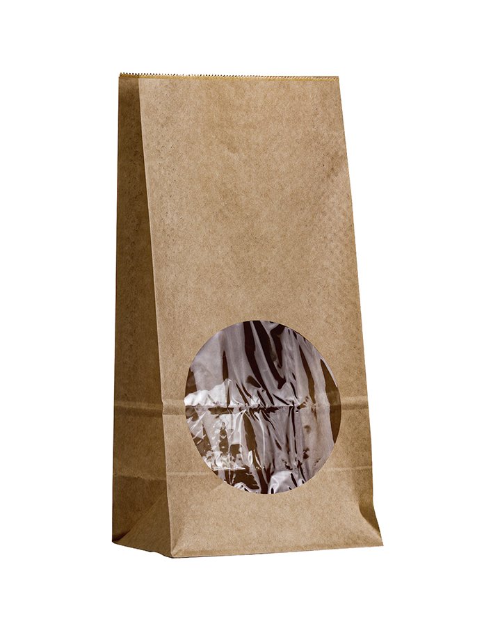 Крафт пакет с круглым окном 120*80*250 мм (1 слой) (бурый)