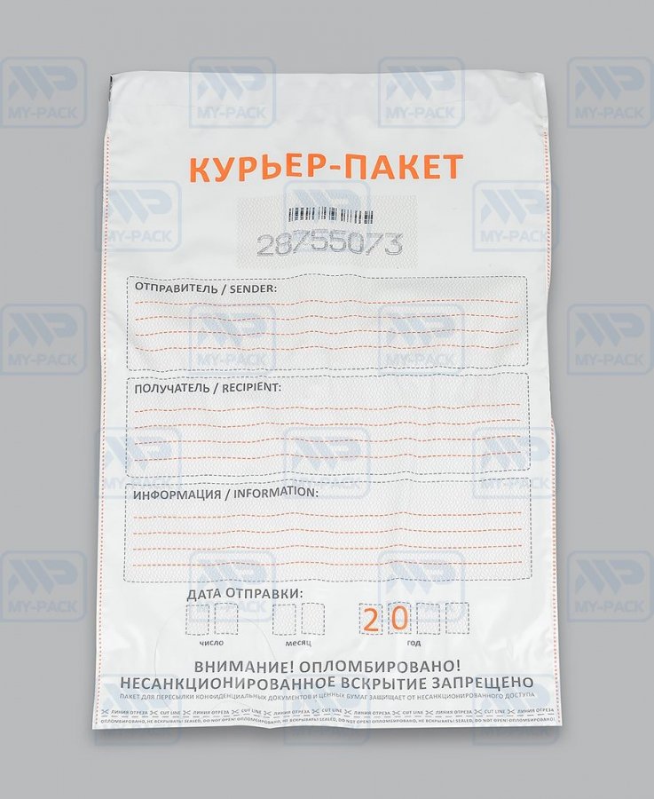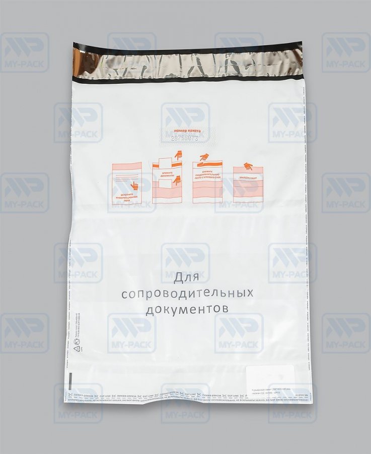 Курьерский пакет 296*400, клеевой клапан 45 мм, карман СД, номер, ш/код
