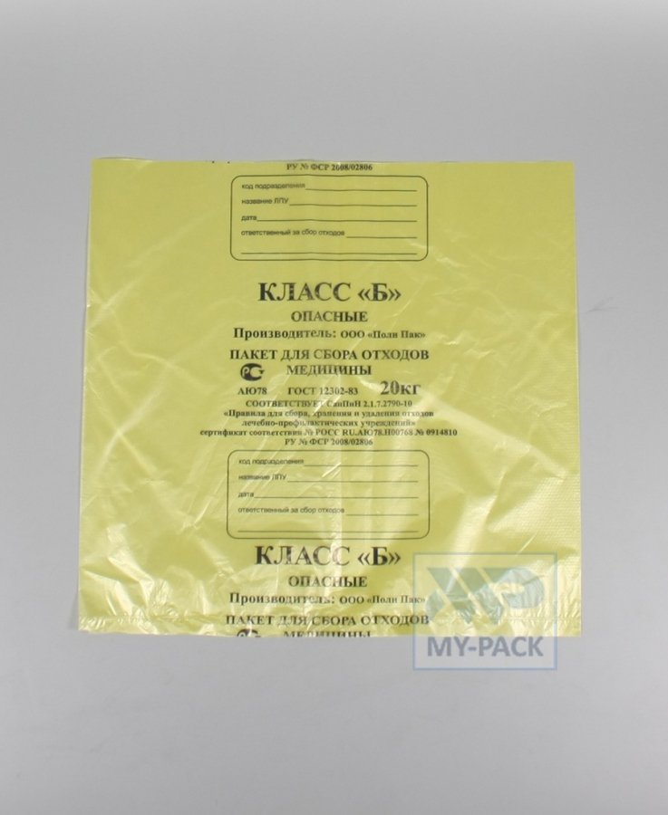 Многоцелевой пакет для утилизации безопасных отходов подходит для использования на разнообразных предприятиях. Пакет класса Б предназначен для утилизации не опасных для жизни человека отходов. Эти пакеты были разработаны максимально универсальными, чтобы их могли использовать как можно больше организаций, начиная от детских садов и заканчивая крупными медицинскими фирмами. Поскольку пакеты специально разрабатывались для самого разнообразного использования, к ним применялись повышенные требования по стойкости к износу и давлению. Их ярко-желтый окрас поможет не затеряться на складе или в больничном шкафу. Если для вашего предприятия не выпускают специализированных средств по уборке отходов, то эти пакеты станут наилучшим решением вашей проблемы.