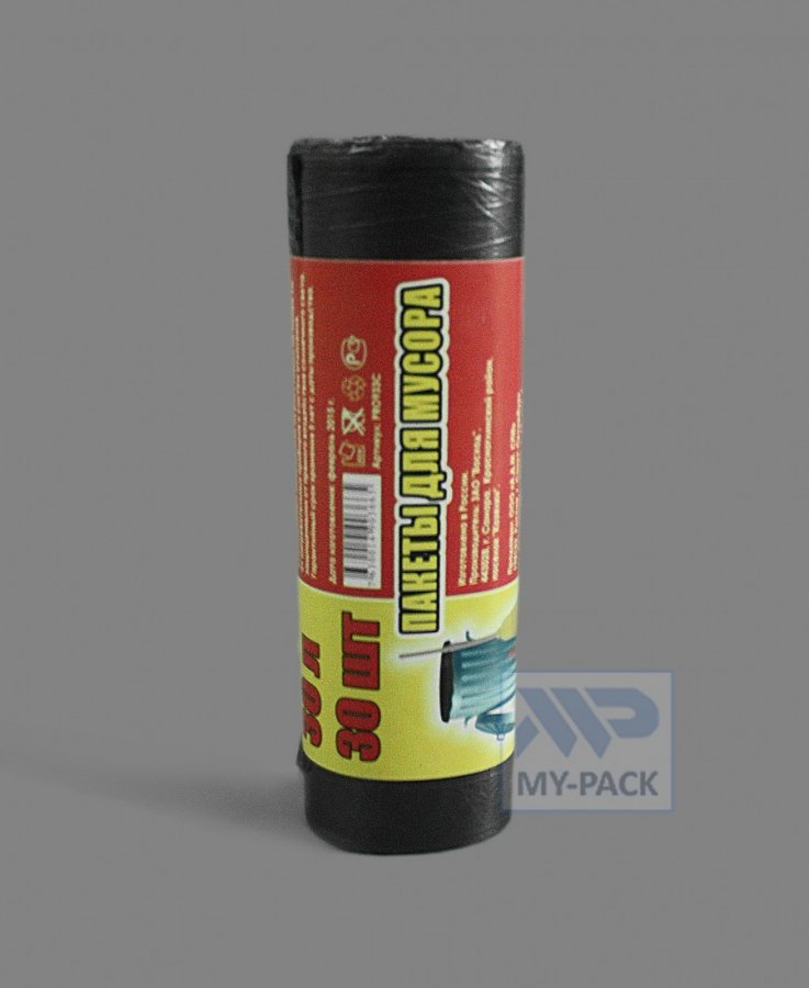 Мешки для мусора ПНД 30л. 30см*60см*8мкм, черный (ролик 30шт.)
