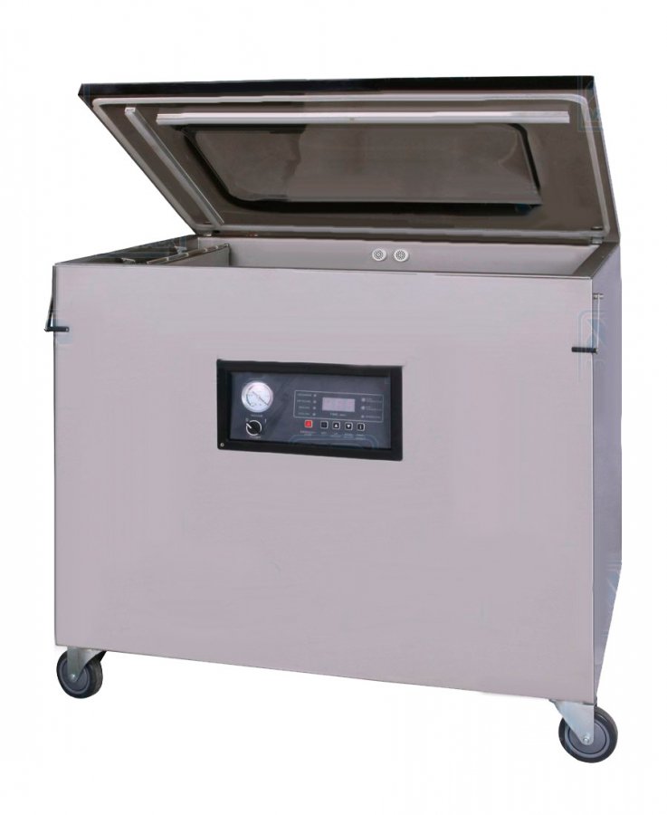 Вакуум-упаковщик DZ-1100/2L – наиболее вместительная модель запатентованной серии однокамерных вакуумных упаковщиков DZ/2L. Имеет напольную конструкцию, для удобного перемещения аппарат оснащен передвижными колесиками. Предназначен для вакуумной упаковки разнообразных пищевых и непищевых продуктов, в том числе и габаритных. Напольная вакуум-упаковочная машина DZ-1100/2L особенности Материал исполнения камеры и корпуса – высококачественная нержавеющая сталь. Крышка – из прочного прозрачного оргстекла. Вакуум упаковочный аппарат DZ-1100/2L имеет глубокую вместительную камеру, двойной промышленный насос общей мощность 40 м³ /час, две L-образно расположенные запаечные планки неодинаковой длины. Для запайки можно использовать как две планки одновременно, так и только одну из них. Ширина шва 10 мм, мощность нагрева регулируется в зависимости от плотности и состава вакуумных пакетов. Аппарат прост и удобен в эксплуатации и сервисном обслуживании. Электронная панель управления с интуитивно понятным интерфейсом обеспечивает простоту настроек требуемых режимов работы. Рабочие размеры камеры – 1050*550*190 мм, высота 190 мм – это общая высота с учетом крышки. Вакуумный упаковщик DZ-1100/2L отличает высокое качество сборки и комплектующих, как и все модели данной серии. Завод изготовитель строго следит за производственным процессом, по его завершении всегда проводится тщательная предпродажная проверка и подготовка. Оборудование имеет прочную деревянную упаковку, гарантирующую сохранность товара во время транспортировки, все необходимые маркировки. Являясь официальным представителем производителя в РФ, мы гарантируем вам оптимальные условия поставки оборудования и приоритетное гарантийное и постагарантийное обслуживание в собственном Сервисном центре компании. Напольная вакуум-упаковочная машина DZ-1100/2L размеры камеры